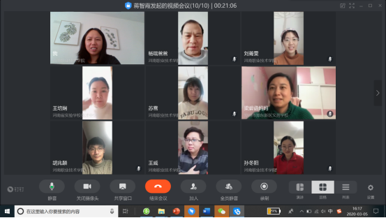 各教研室借助网络平台的直播、视频会议、语音会议、群聊等功能,围绕课堂教学创新和在线课程建设等内容,开展了集体备课、专题研讨、经验分享等教研活动。尤其结合各专业线上教学情况,围绕提升线上教学质量的路径措施、手段方法等进行深入研讨。教师们通过分享交流,有效地解决了网上教学遇到的问题,为后续更好地推进线上教育教学工作提供了助力。
