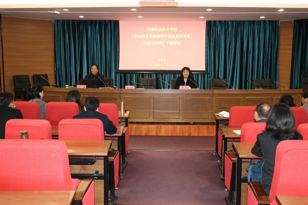 11月18日下午,我校在行政楼238会议举办《职业教育国家级教学成果奖培育、申报与评审》专题讲座。中国高等教育学会职教分会专家委员会委员、现代职业教育研究院专家委员会副主任委员于雷教授应邀来我校做专题报告,学校副院长肖珑、在研的省级教改项目组成员、各教学单位教研室主任和骨干教师共100余人参加了会议。会议由教务处处长李小强主持。