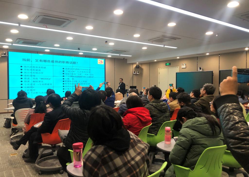 王寿斌教授首先从教师为什么要搞教科研、关于教科研的辩证法、教学研究与教育研究的基本特征及范畴、教师教科研潜质的内涵等方面入手分享了自己从事教科研多年以来的收获和感悟;然后介绍了如何紧扣主流媒体热点,发现问题、创新思考、引流潮流,提升自身的媒体素养和科研视野;归纳概括了当前和历年来职教热点与媒体呈现等方面内容,并从其近几年所关注的职教热门话题及对应发表的文章举例说明了如何选题和撰写;最后介绍了如何从日常活动、文献综述、甄别比较、热门话题、条件与困难排查、对创新的追问、热点追踪、企业与社会需求、校企合作与校校合作、前沿政策宣讲、“反弹琵琶”的冷思考等十几方面进行教科研课题的选题,并对课题拟题的要求及框架结构、教科研论文选题及写作进行了详细的分析并提出了针对性的意见和建议。