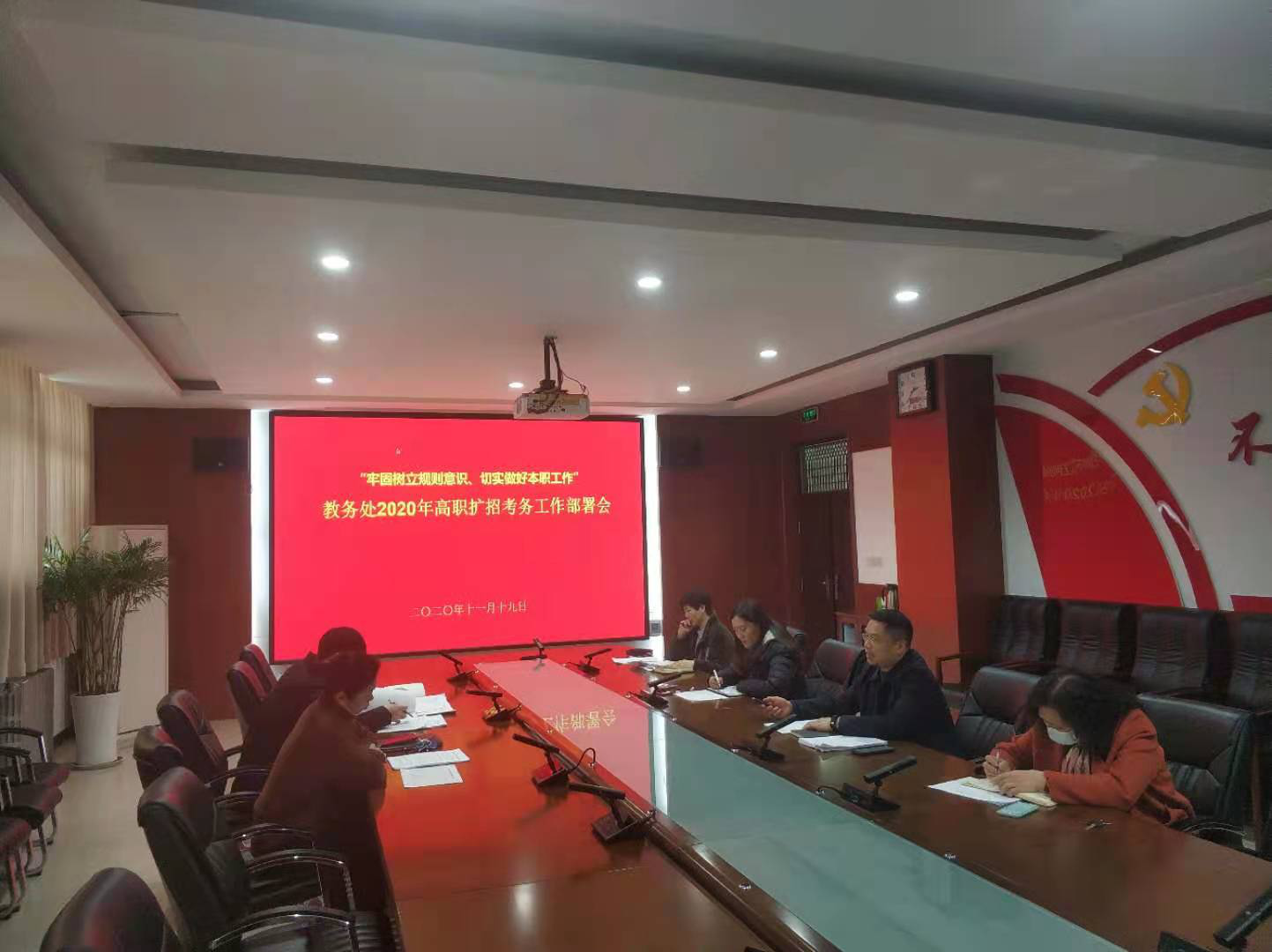 为做好我校2020年高职扩招单独招生考试工作,结合年度诚信主题教育活动安排,11月19日下午,教务处在行政楼332会召开“牢固树立规则意识、切实做好本职工作—教务处2020年高职扩招考务工作部署会”,教务处全体人员参加了会议,会议由教务处处长李小强主持。