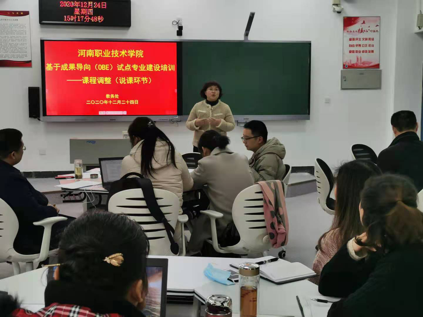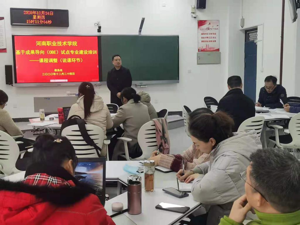 12月24日下午,我校成果导向(OBE)试点专业建设“说课程”研讨会在明知楼3306教室召开,学校副校长肖珑出席会议并做重要讲话,教务处、机电工程学院负责人和我校数控技术、计算机网络技术、会计和酒店管理四个试点专业的专业负责人、课程负责人和教务处相关工作人员近40人参加了此次“线上+线下”混合式“说课程”研讨会,会议由教务处处长李小强主持。