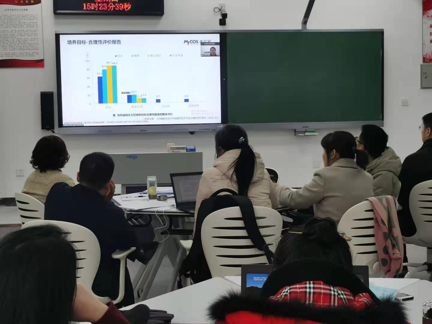 项目合作方麦可思公司培训专家在进行简短的线上说课程要求后,数控技术试点专业课程负责人董延、冯金广等六位教师结合自己任教课程进行了内容详实、条理清晰,重点突出,层次分明的“说课程”汇报,内容涉及课程简介、课程目标设置的合理性、课程对专业目标的支撑度,课程与先修后修课程的逻辑关系等方面,接着试点专业任课教师就汇报内容展开了研讨,大家积极讨论,深入思考,踊跃发言,思维的火花在交流碰撞中产生,现场气氛严肃活泼,生动热烈。