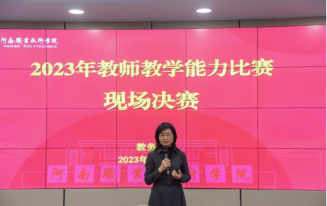 2023年4月10日,河南职院2023教师教学能力比赛现场决赛在明知楼3110智慧教室隆重举行,校党委书记李桂贞、副校长肖珑、8个教学单位的14个参赛团队、部分教学单位负责人及教务处相关人员参加活动。