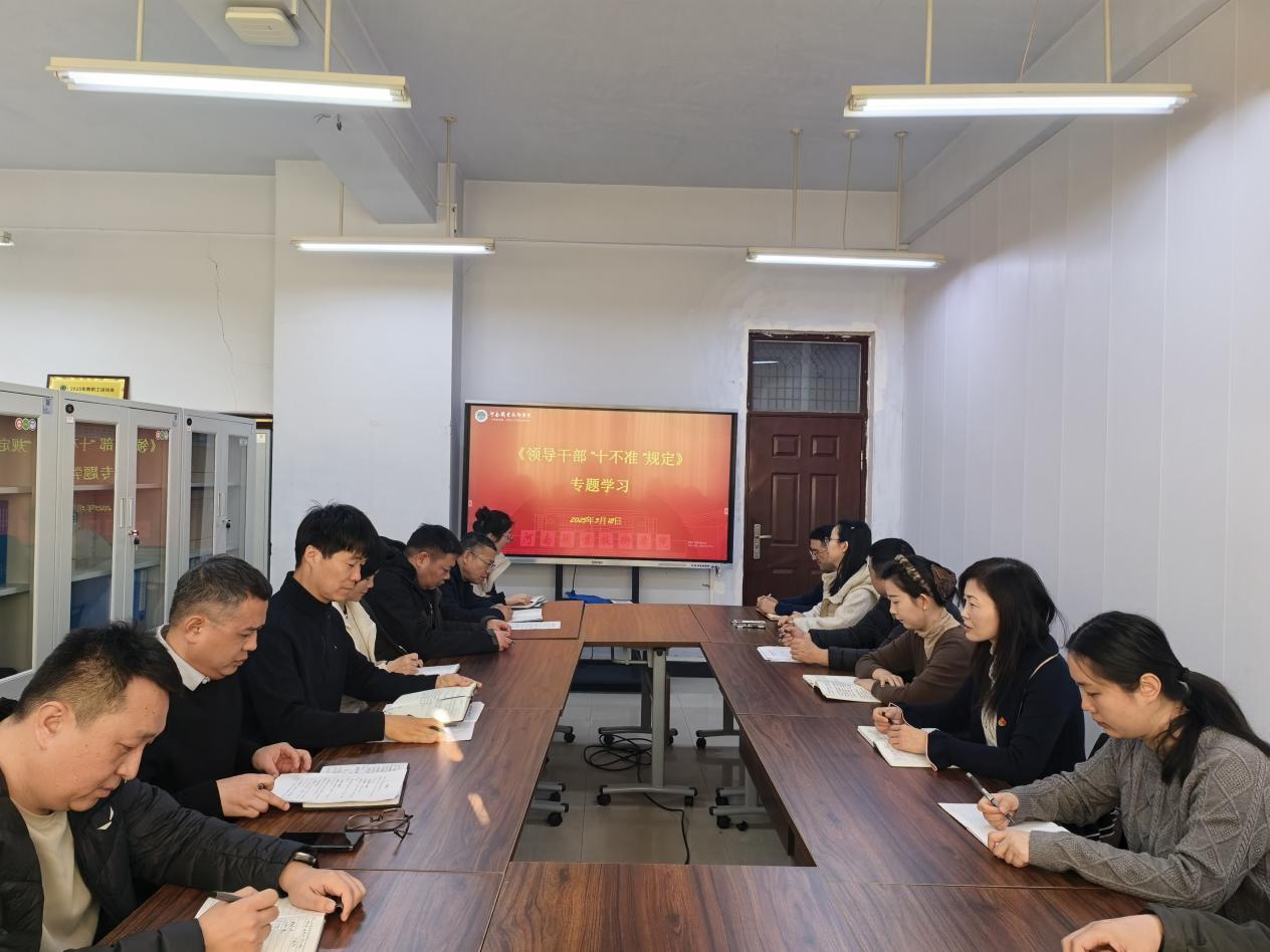 为深入贯彻落实全面从严治党要求,进一步强化领导干部纪律规矩意识,近日,教务处组织全体成员召开专题学习会,集中学习《领导干部“十不准”规定》(以下简称《规定》),并结合工作实际开展交流研讨,推动纪律教育走深走实。