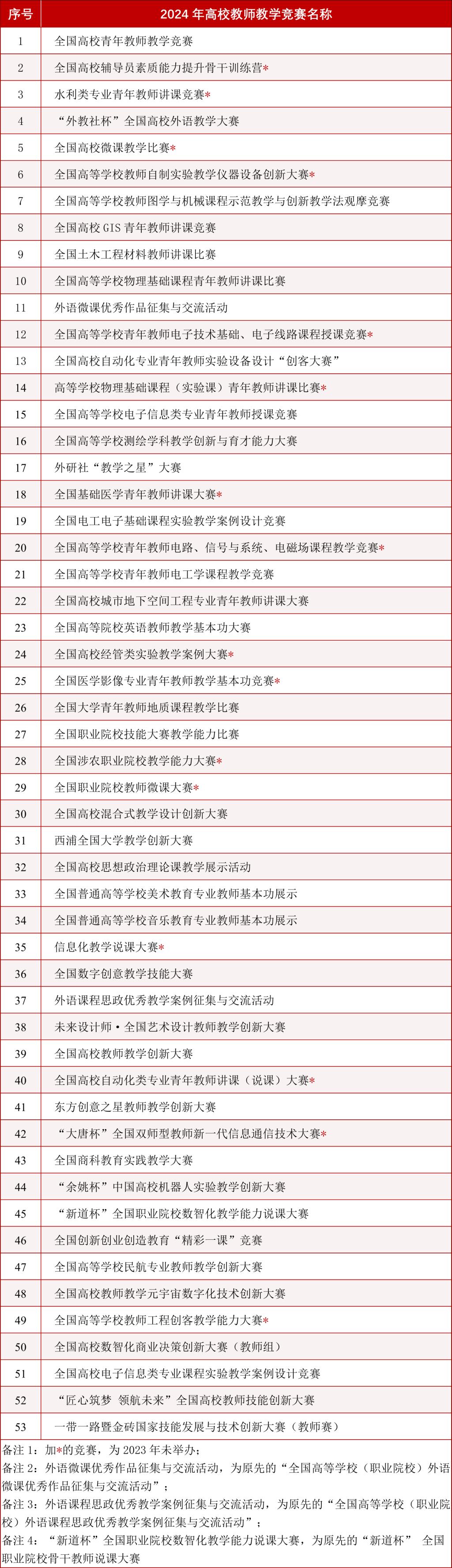 2024年高校教师教学竞赛清单